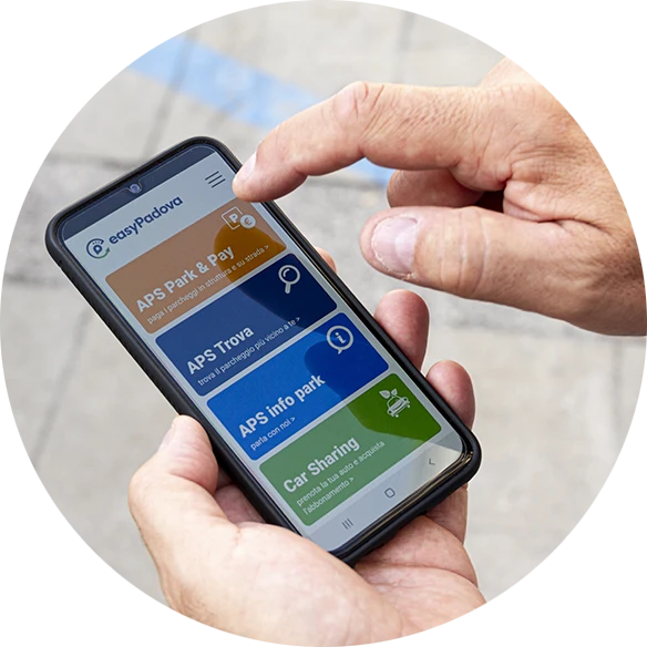 Nell’app clicca “APS Park & Pay” e scegli “Parcheggio strisce blu”